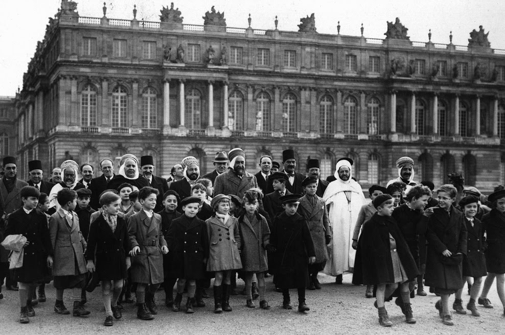 Chefes nativos da Argélia em uma visita à Versalhes durante a convenção do Comitê Mediterrâneo. França, aproximadamente 1930.